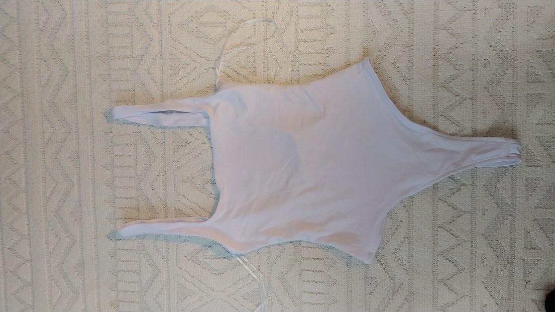 Beyaz pastel renkli, normal midi boyda, vücuda oturan emzirme atleti. Rahat kullanım için yumuşak kumaştan yapılmıştır.
