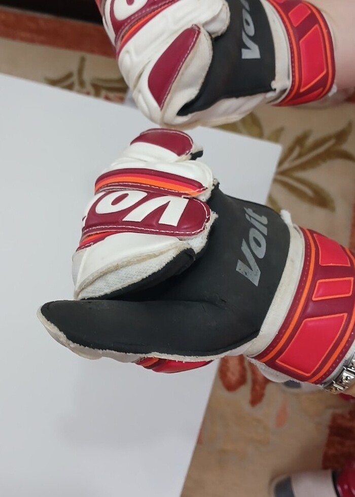 S beden ikinci el VOİT kaleci eldiveni hiç bir yerinde yırtık sökük bulunmamaktadır S beden olup 15 - 16 yaş için uyumludur