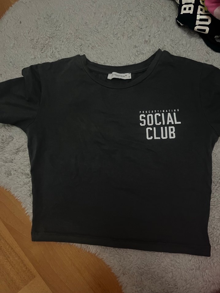 Kızlar için füme rengi kısa kollu ve bisiklet yaka, vücuda oturan kesimde tişört. Sentetik kumaştan, üzerinde "SOCIAL CLUB" baskısı bulunur.