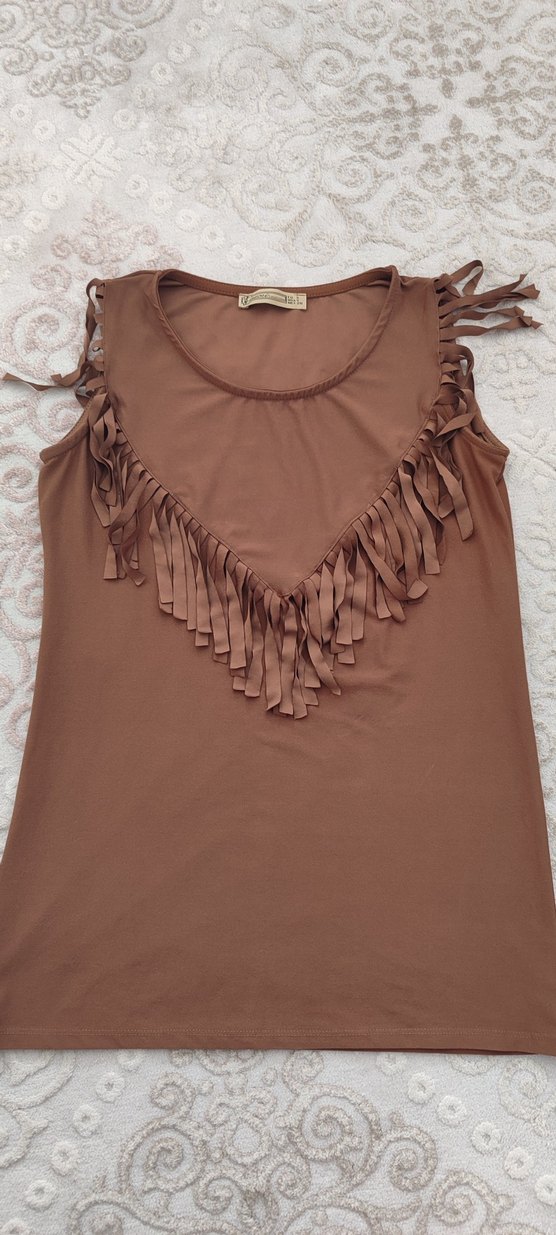S beden püskül detaylı bluz hiç giyilmedi tertemiz