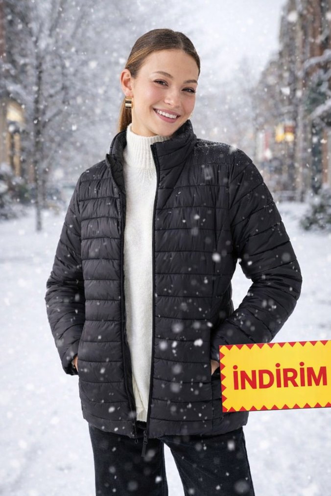 S beden siyah şişme mont bayan