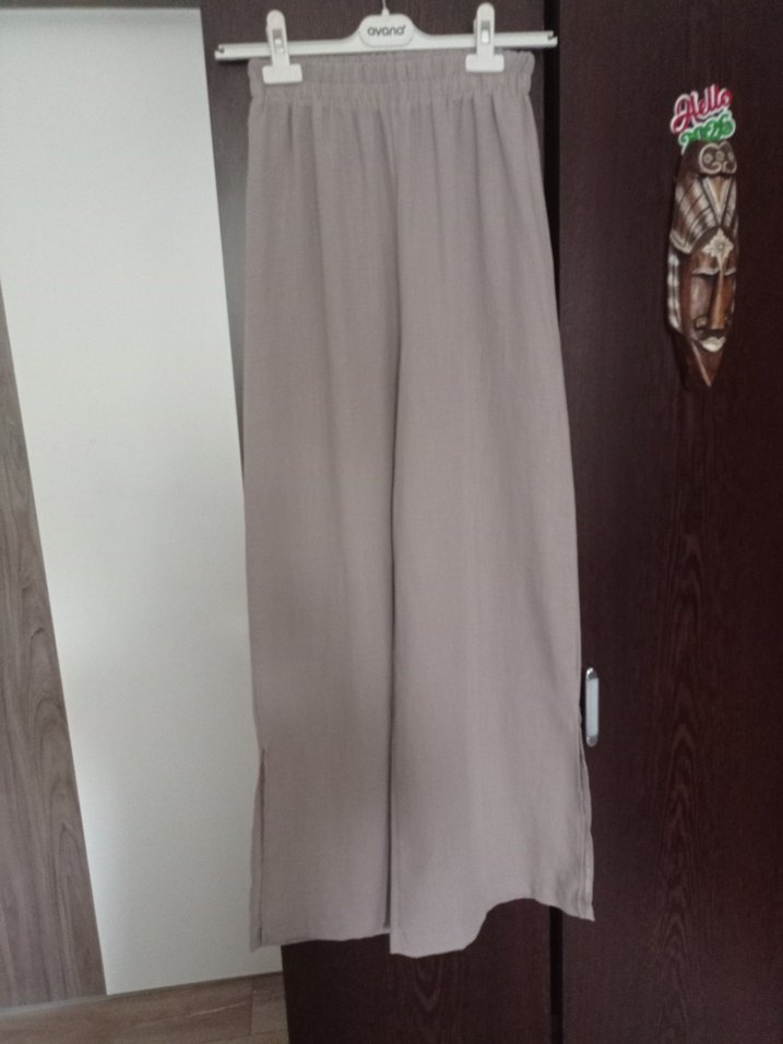 S bedenBej Bol Kesim Uzun Keten Pantolon