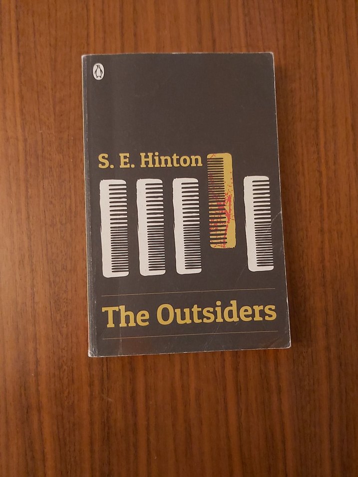 S.E. Hinton'ın "The Outsiders" adlı kitabı, sade kapak tasarımı ve tarak görselleriyle klasik bir romandır.
