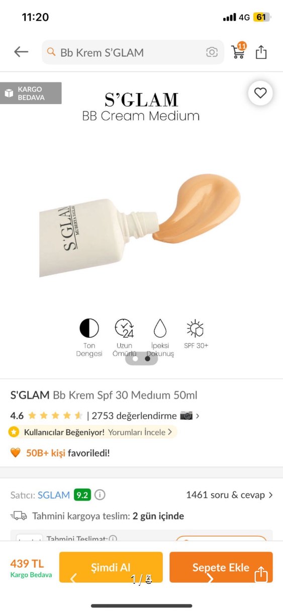 S'GLAM BB Krem Medium, SPF 30 koruma ve ipeksi dokunuş ile uzun süre kalıcı, ton dengeli açık bej kaplama sunar.