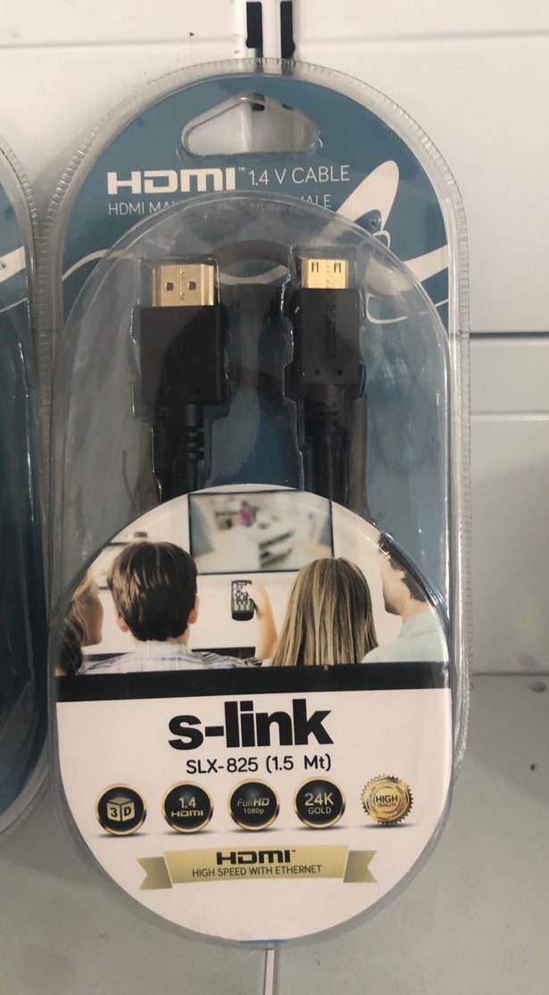 s-link HDMI 1.4 V kablo, 1.5 metre uzunluğunda, 24K altın kaplama bağlantı uçlarıyla yüksek hızlı veri aktarımı ve Ethernet desteği sunar. Full HD ve 3D video destekler.