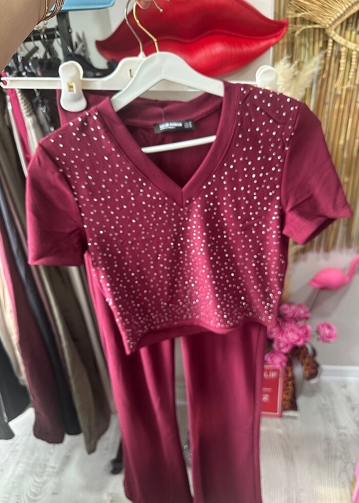 S M L alt üst taş işlemeli takım