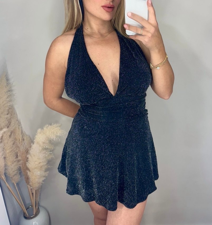 S-M Sırt açık simli Mini elbise