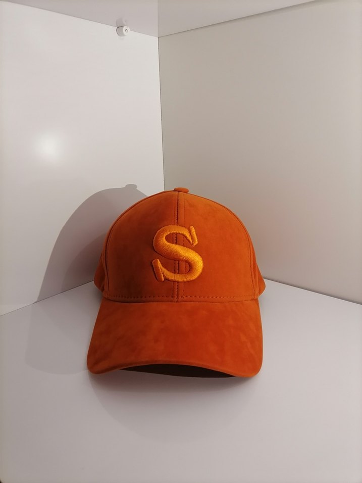 Turuncu süet malzemeden yapılmış, önde işlenmiş 'S' harfi bulunan, velcro ayarlı şapka. Özel tasarımdır. Hiç kullanılmamıştır. Diğer renk seçenekleri de mevcuttur. Aklınıza takılan herhangi bir soru olursa cevaplıyorum. Diğer ürünlerimi görmek için gardrobuma bakmadan geçmeyin. Keyifli alışverişler dilerim :)
