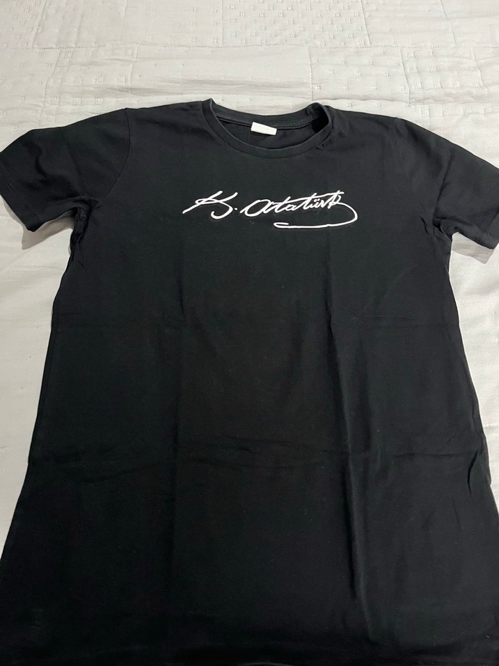 S.otatat baskılı beyaz yazılı, kısa kollu, yuvarlak yakalı ve bol kesim siyah erkek tişörtü. Sentetik kumaştan üretilmiştir, günlük kullanım için uygundur.