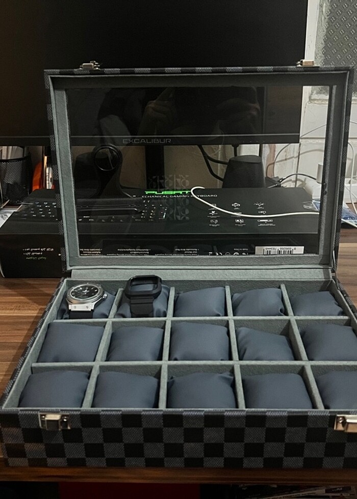 Ürün sıfır sorunsuzdur. 15 adet saat koyulabiliyor süngerli ve iç derisi sunni olup saatlerinizi güvenle rahat şekilde takıp koyabilirsiniz. Oldukça şıktır ürün ahşap yapımıdır. El işçiliği vardır.dışı komple deri kaplamadır.
