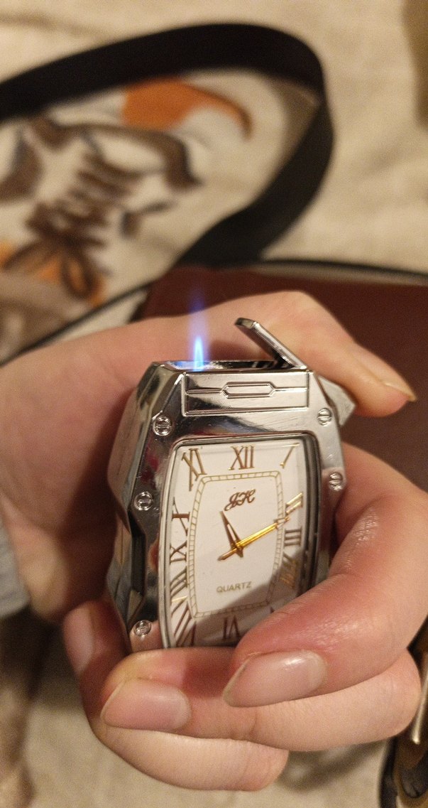 Gümüş ve altın renk tonlarında saati çalışır, içini açtırmanız gerekebilir. Ürün SIFIRDIR, YENİ GELEN ÜRÜNDÜR. Ürün ağırdır, kalitelidir. Plastik camında bir çizik vardır onu değiştirebilirsiniz ya da bu şekilde kullanırsınız. Pürmüzü çok kuvvetlidir. Rüzgara dayanıklıdır.Masanıza koyun dursun hem saat hem çakmak niyetine kullanın. Alana hayırlı olsun⌚ #çakmak #saat