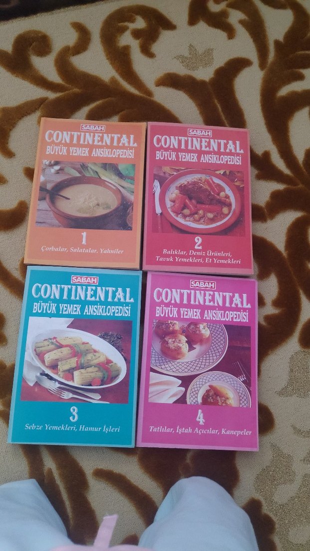 Çorbalardan tatlılara, deniz ürünlerinden hamur işlerine kadar geniş yemek tarifleri içeren Sabah Continental Büyük Yemek Ansiklopedisi 4 ciltlik set.