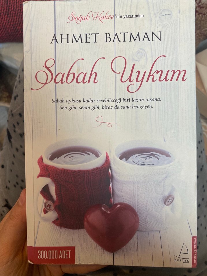 Ahmet Batman'ın Sabah Uykum kitabı, sabah uykusu kadar sevebilecek biri ihtiyacını anlatıyor. Kapakta iki kahve fincanı ve kalp figürü bulunuyor. Destek yayınevi, 300.000 adet satıldı. ☕