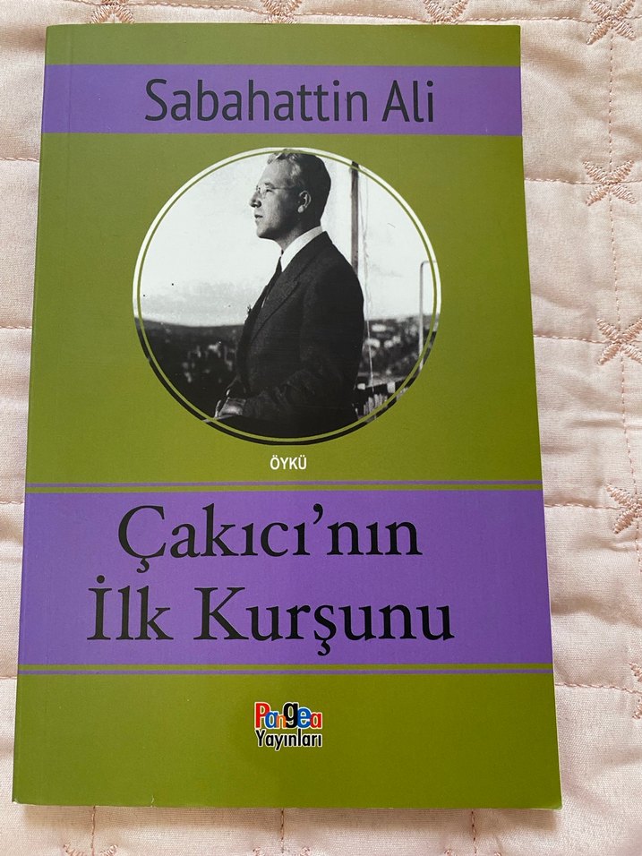 Sabahattin Ali'nin "Çakıcı'nın İlk Kurşunu" adlı romanı, yazarın portresiyle klasik kapak tasarımına sahip.