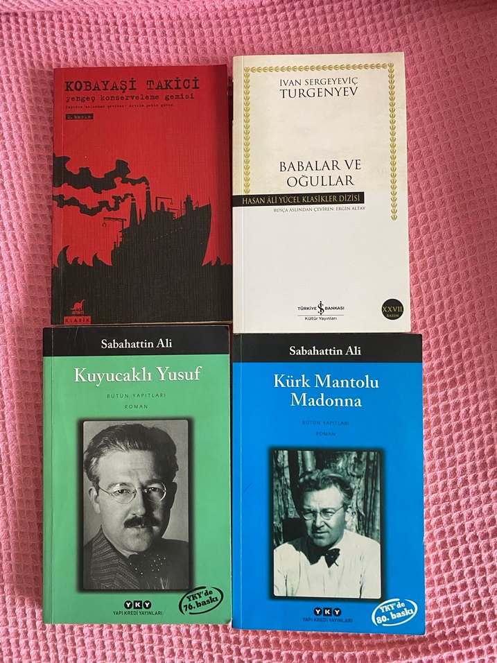 Sabahattin Ali ve Turgenev'in Babalar ve Oğullar eserlerini içeren dört klasik kitap seti. Kobayaşi takici yengeç konserveleme gemisi Toplu alımda indirim yaparım Kuyucaklı yusuf Kürk mantolu madonna