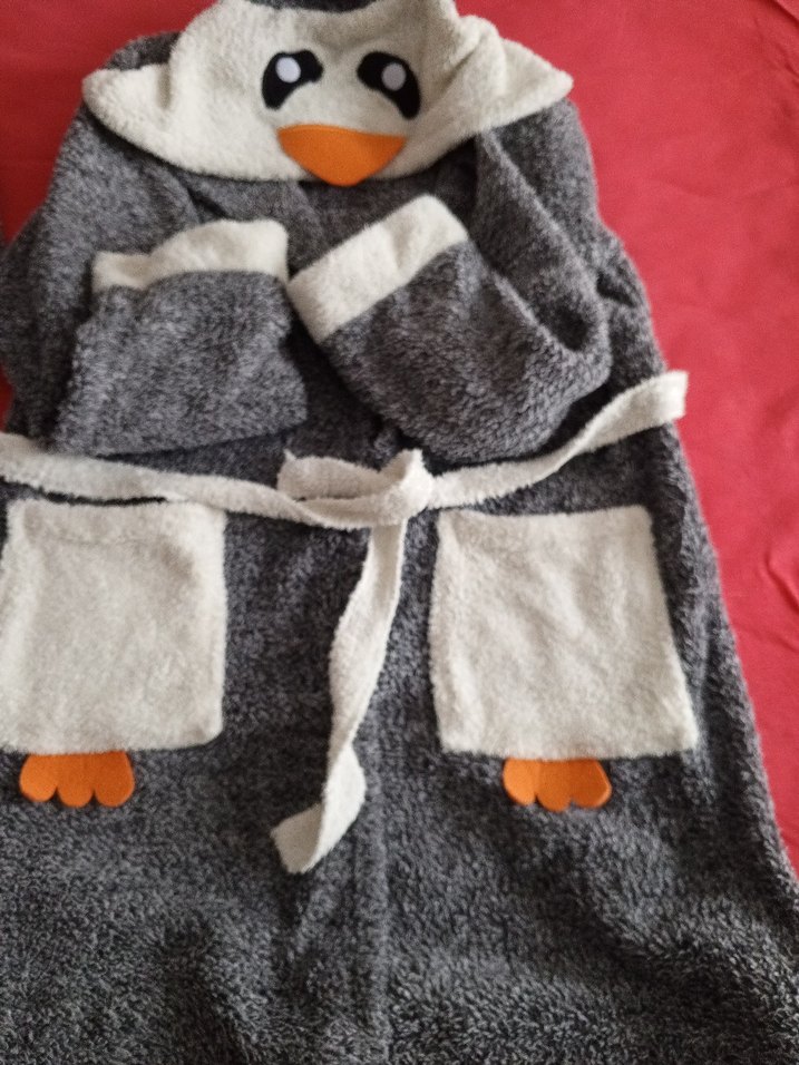 Gri renkli, yumuşak ve sıcak kumaştan yapılmış k. kapüşonlu sevimli penguenyüz ve ön cepler bulunur.