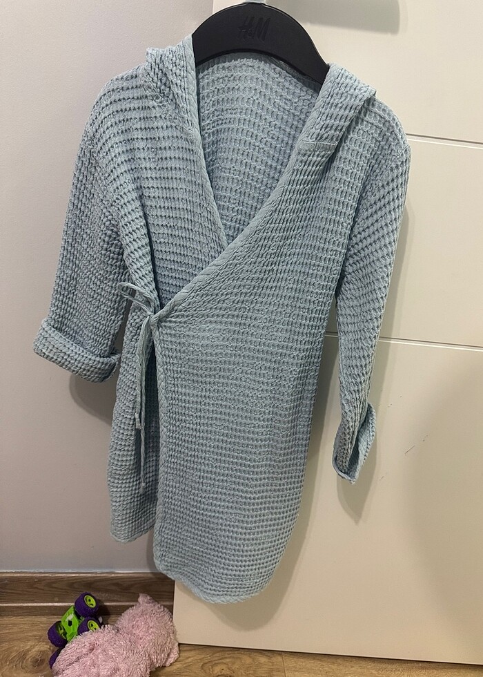 Çok kaliteli bir sabahlık oğluma büyük geldigi için giydirmedim ve öyle unuttum sıfır hiç giyilmedi 1-2 yaş diyor ama 3-4 de giyer