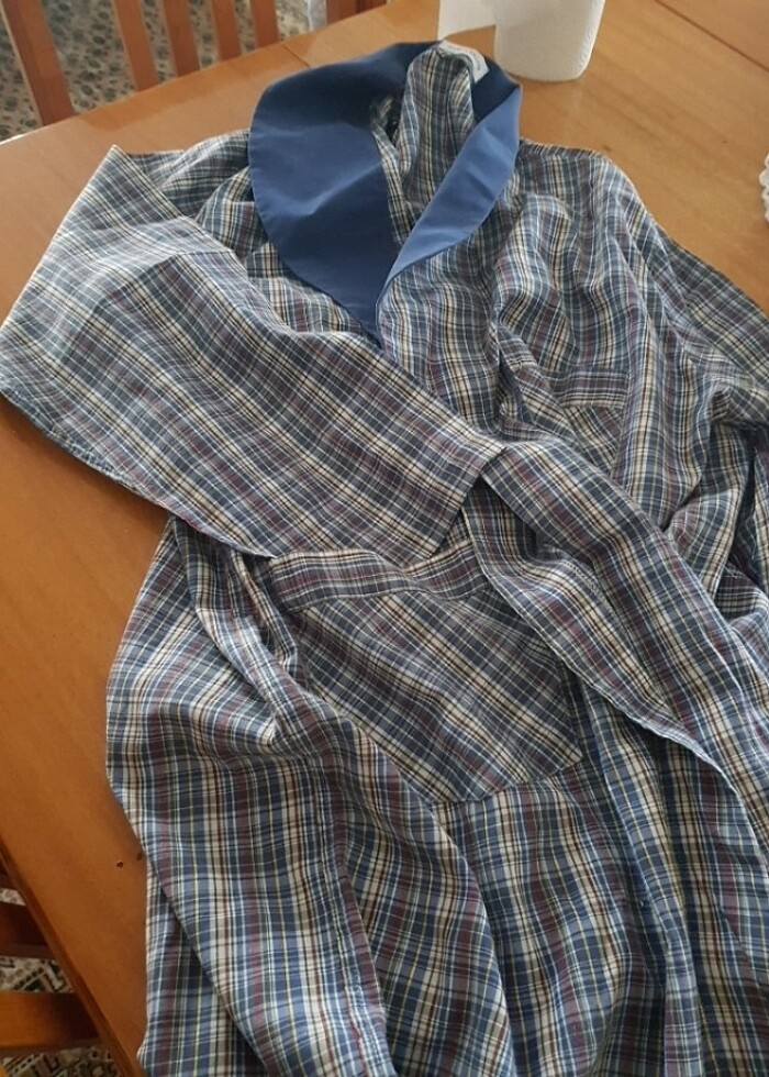 Sabahlık, yazlık keten kumaştan olup 98 cm boyundadır. Kuşağı mevcut, 3 ceplidir. Göğüs çevresi 110 cm.