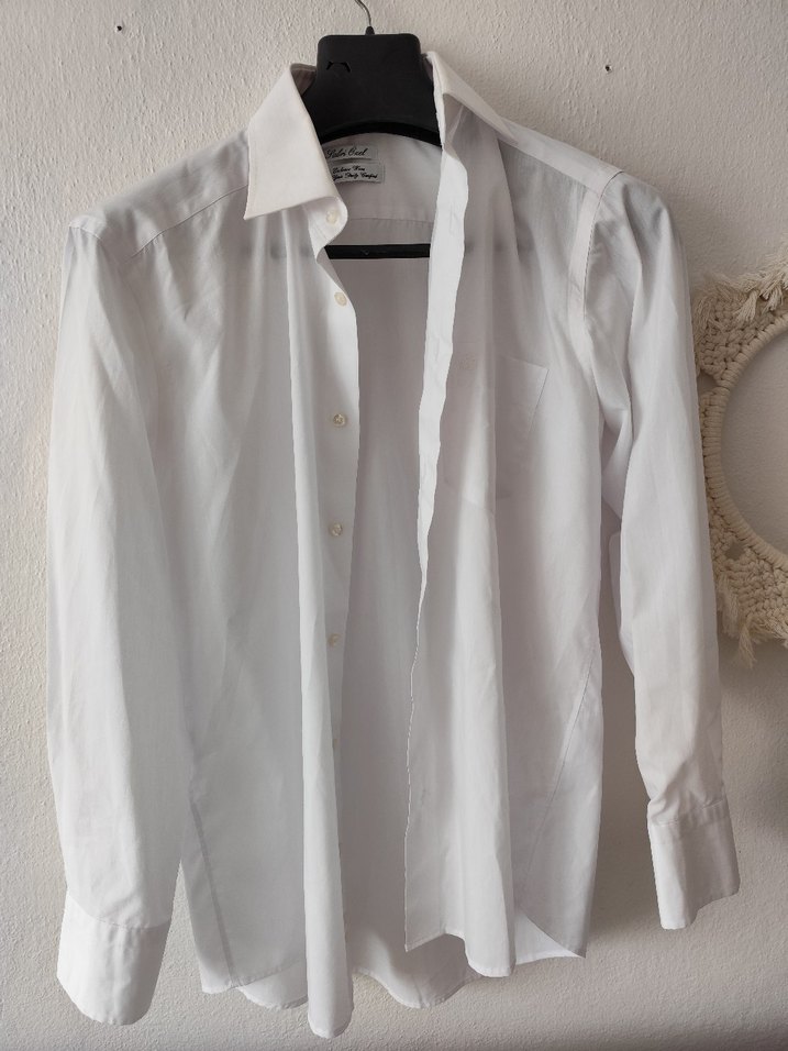 Bu erkek gömleği, yakalı ve düğmeli ön detaylara sahiptir. Pamuk kumaştan uzun kollu ve regular fit olup, ofis kullanımı için uygundur, parlak beyaz renktedir.