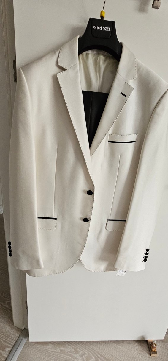 SABRI OZEL MARKA 1 KEZ KULLANILMIS DAMATLIK/NISANLIK TAKIM ELBISE. 54 BEDEN 6 DROP ALAN KISI KURU TEMIZLEME YAPTIRIP KULLANACAK. SORUNSUZDUR. KILIFIYLA BIRLIKTE.