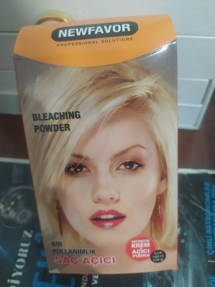 Newfavor tek kullanımlık saç açıcı toz, krem aktivatör ile birlikte. Profesyonel çözüm, etkili saç açma sağlar.