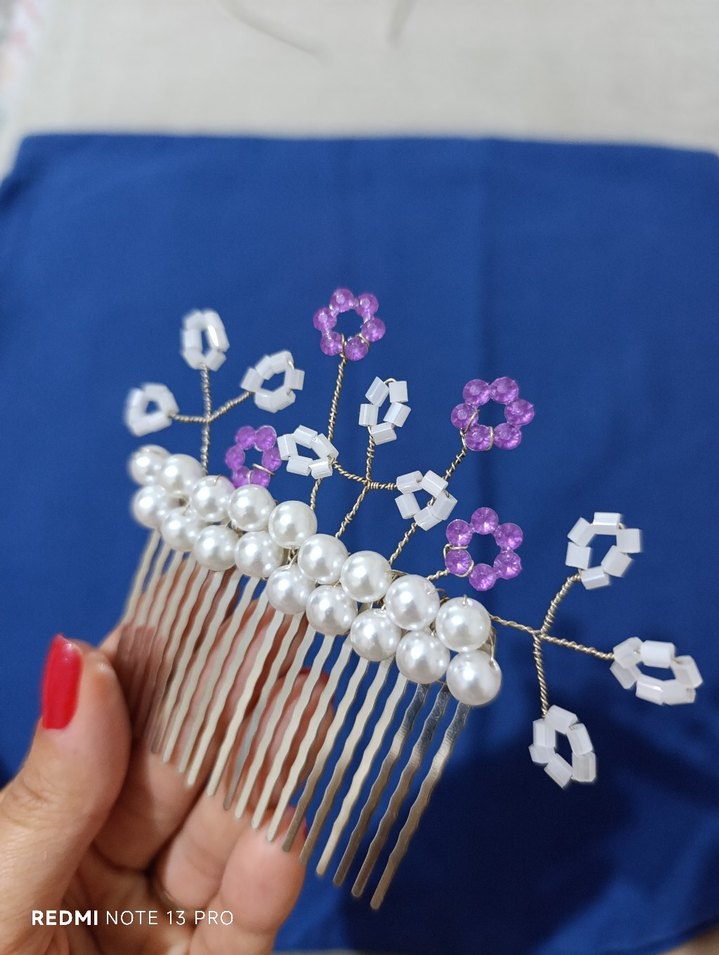 Ürün el yapımıdır, kristal boncuklar ve inciler kullanılmıştır.