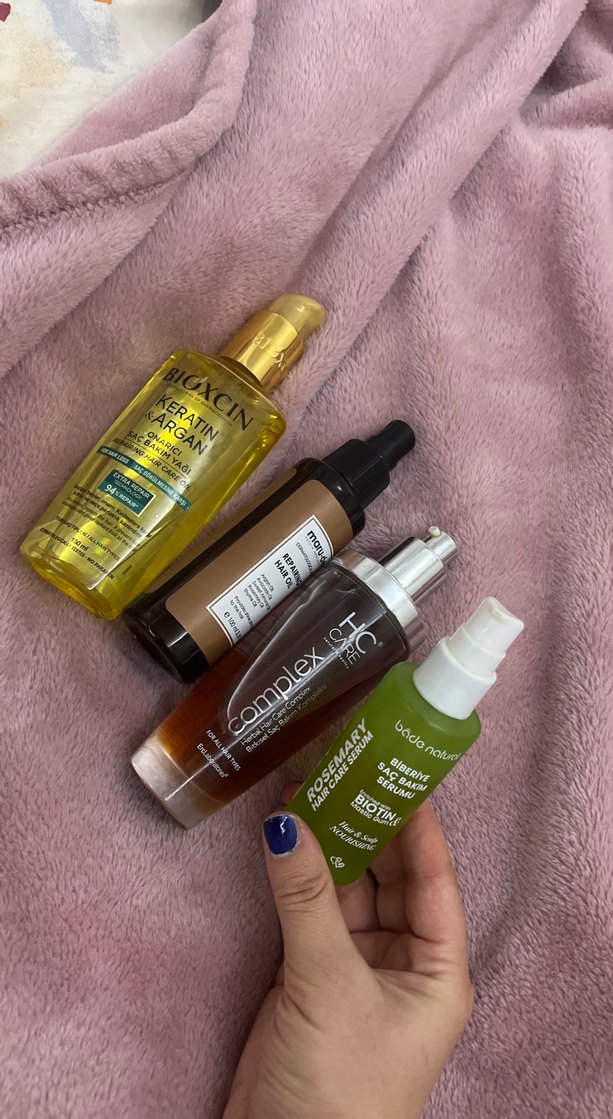 Keratin argan yağı, biberiye kompleksi ve antioksidan sprey içeren saç bakım yağları ve serumları seti. Saçı besler ve korur.