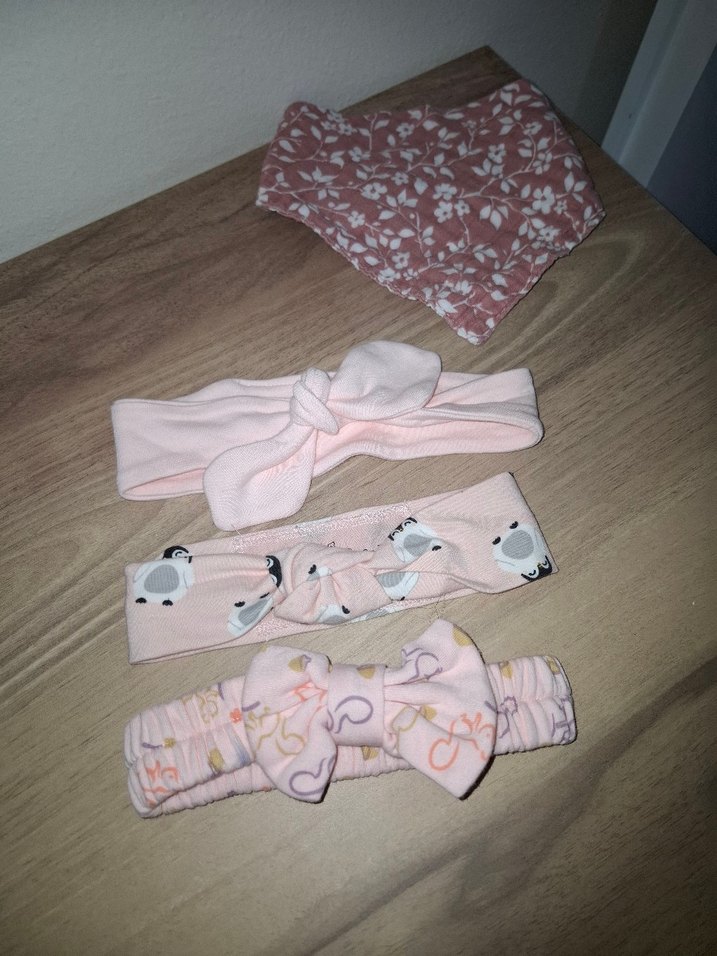 Hiçbiri kullanılmadı. Yıkayıp ütüleyip dolabına koydum ama tutmadı saçında takamadım sevmedi. H&m Marka ve E bebek marka. 6/9 ay uyumlu