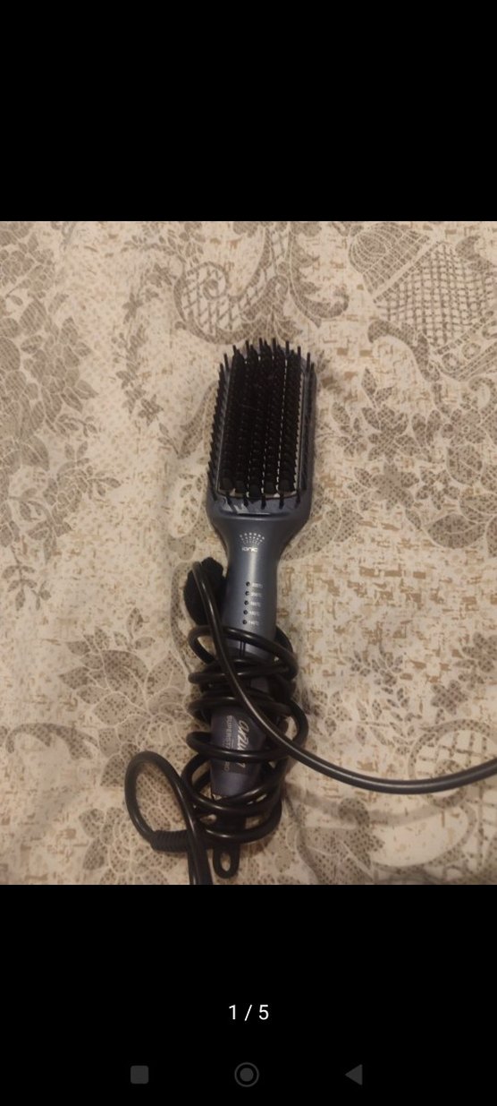 Gri saç düzleştirici fırça, kolay şekillendirme için kıllara ve rahat tutuş sağlayan sap kısmına sahiptir. Saçı etkili bir şekilde düzleştirir.