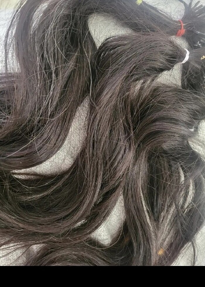 gercek sac 200 adet 60 cm boyasiz doğal koyu kestane renginde sac 1 ay kullanıldı ( uçları yapipacak)