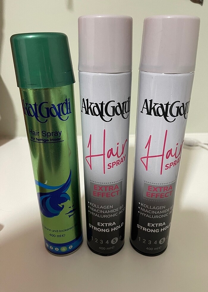 Akargardi marka saç spreyi 3 adettir.Yeni ve etiketli ürünlerdir hiç kullanılmadı