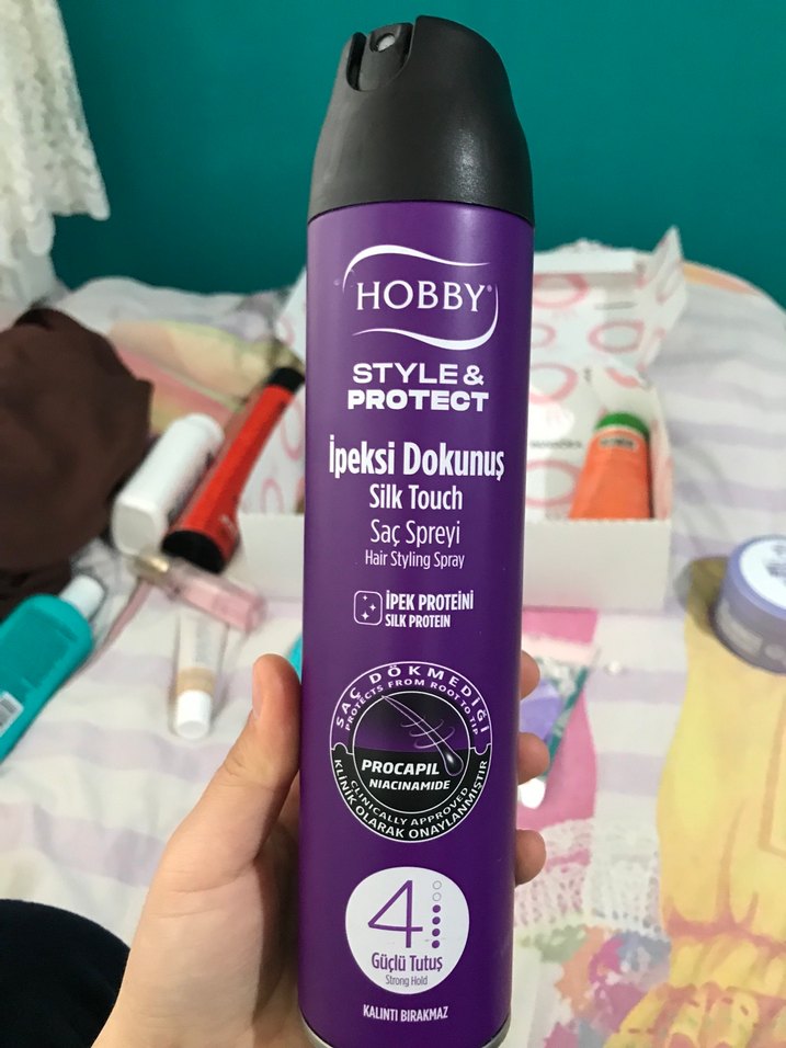 Hobby İpeksi Dokunuş Saç Spreyi, ipek proteini ve Procapil ile güçlü tutuş sağlar. Kalıntı bırakmadan uzun süreli şekillendirme sunar.