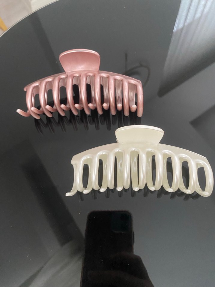 Beyaz ve pembe pastel tonlarda, saç tokaları. Günlük modern saç stilleri için uygundur.