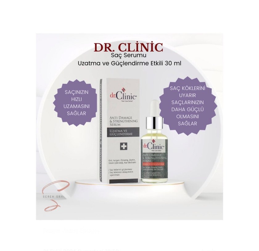 Dr. Clinic saç uzatma ve güçlendirme serumu 30 ml. Sıfır ürün. E ticaret sitelerindeki hesaplarımı kapadığım için elimdeki ürünleri buraya yüklüyorum. #saç #saçserumu #saçuzatma #uzatmaserumu