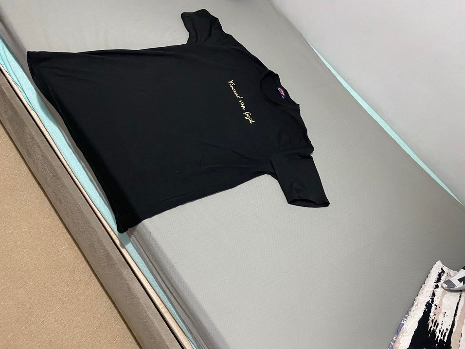 Siyah renkli, baskılı, kısa kollu kız tişörtü. Rahat kesim ve yuvarlak yaka, ipeksi kumaştan üretilmiştir.