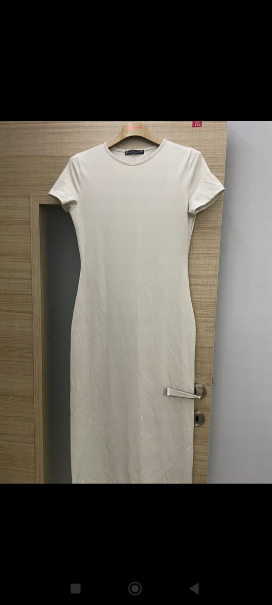 Kısa kollu, bisiklet yaka ve uzun kesime sahip kadın elbisesi, yumuşak sentetik kumaştan üretilmiştir. Minimalist ve sade tasarımı günlük sokak stiline uygundur.