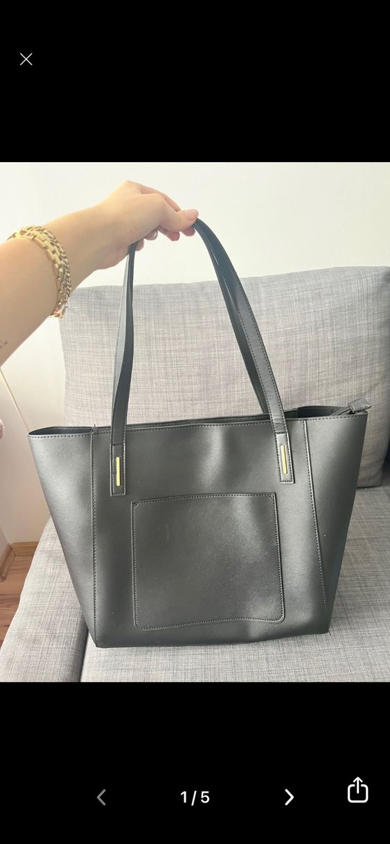 Siyah deri ve fermuarlı üst kısmıyla sade tasarımlı kadın çantasıdır. Gri tonları ve desen içermeyen yüzeyi günlük sokak stili için uygundur. Uzun sapları ve ön ceplidir. Büyük boy