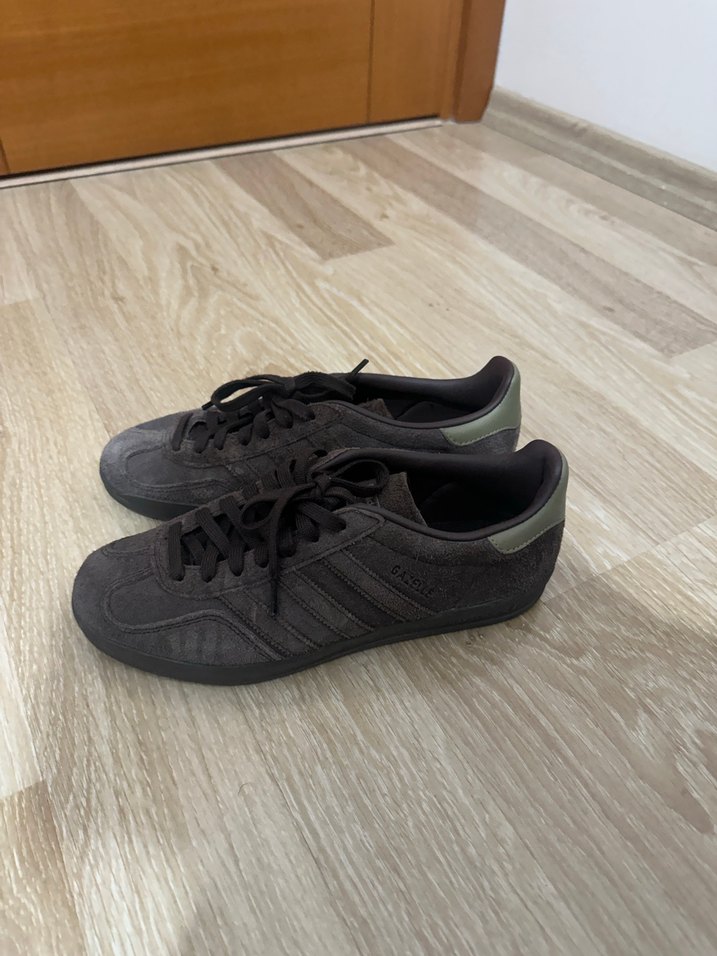 Kahverengi, kauçuk tabanlı kadın spor ayakkabısı. Düz ve desen içermeyen tasarımıyla spor ve şık bir görünüm sunar.