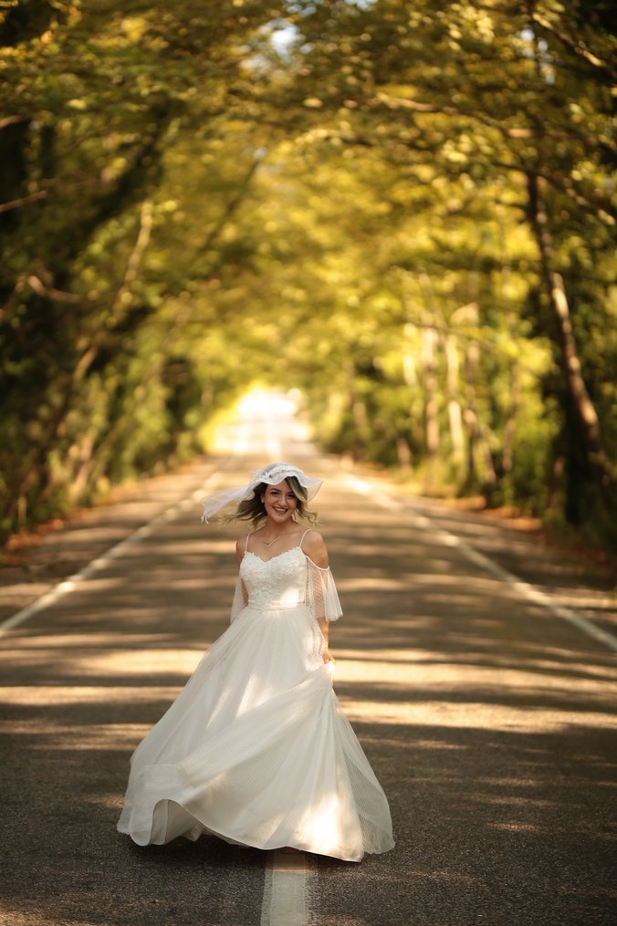 Sadece bir kere dış çekimde giyildi kuru temizlemesi yapıldı. Tertemiz ve çok gösterişli bir dış çekim gelinlik