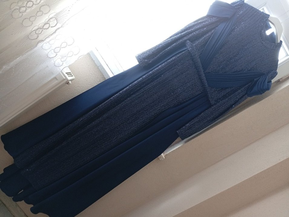 sadece yarım saat giyildi sıfır ayarında lacivert ışıltılı elbise ürünü kendi nikahım için 5.500TL ye satın aldım.sadece nikah töreni ve kısa bir fotoğraf çekimi için toplamda yarım saat giyildi üzerinde en ufak bir leke sökük veya deforme yoktur mağazadan alınmış gibi temizdir