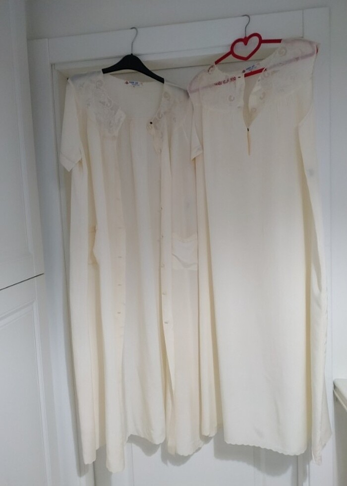 Saf ipek gecelik sabahlık 30yıl önce yurt dışından gelmişti.Hiç kullanılmadı .çeyizlik.