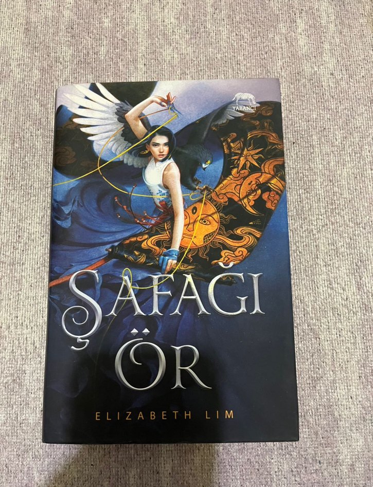 Elizabeth Lim'in "Şafağı Ör" adlı romanı, kanatlı bir kadın ve detaylı tasarımlarla dikkat çeken kapağa sahip.