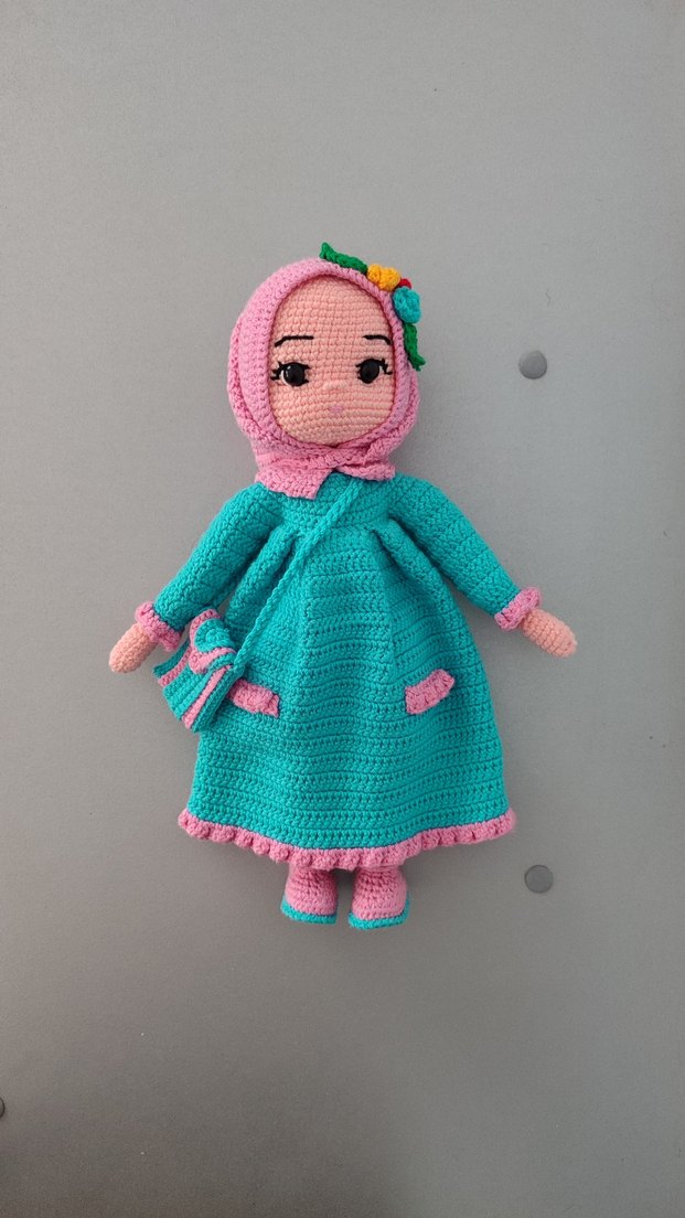 •32×22×7 cm boyutlarında, •Çantalı, şortlu ve eşarplıdır, •Elbisesi, şortu ve eşarbı çıkarılabilir, •Tellidir. Hareket ettirilebilir, •Nako ip ile örülmüştür, •Uzun ömürlüdür, •30° yıkanabilir.