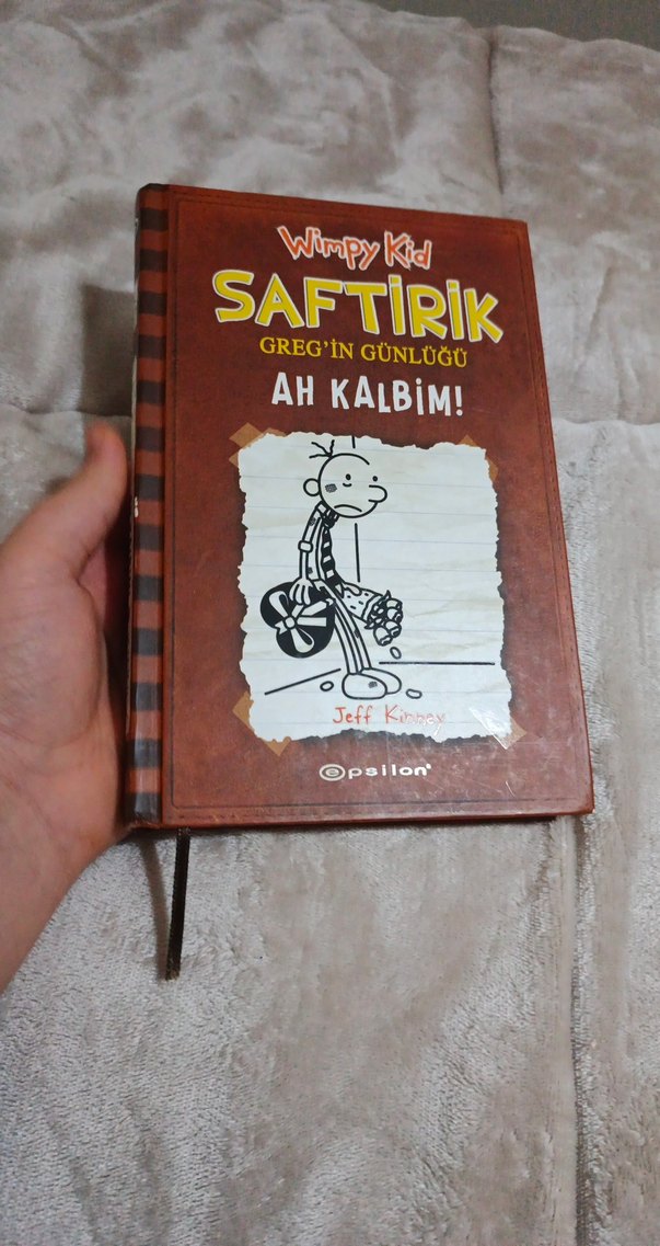 Jeff Kinney'nin "Saftirik Greg'in Günlüğü: Ah Kalbim!" adlı mizah kitabı, çizgi karakterli kapak tasarımı ve günlük tarzı anlatımıyla dikkat çekiyor.