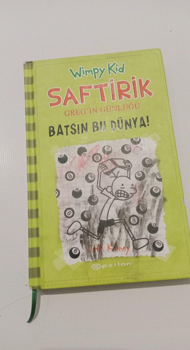 Saftirik Greg'in Günlüğü serisinden 'Batsın Bu Dünya!' başlıklı mizahi kitap, Greg'in günlüğü ve eğlenceli çizimlerle dolu. Tek kusuru 2.fotoda kızım çizmiş
