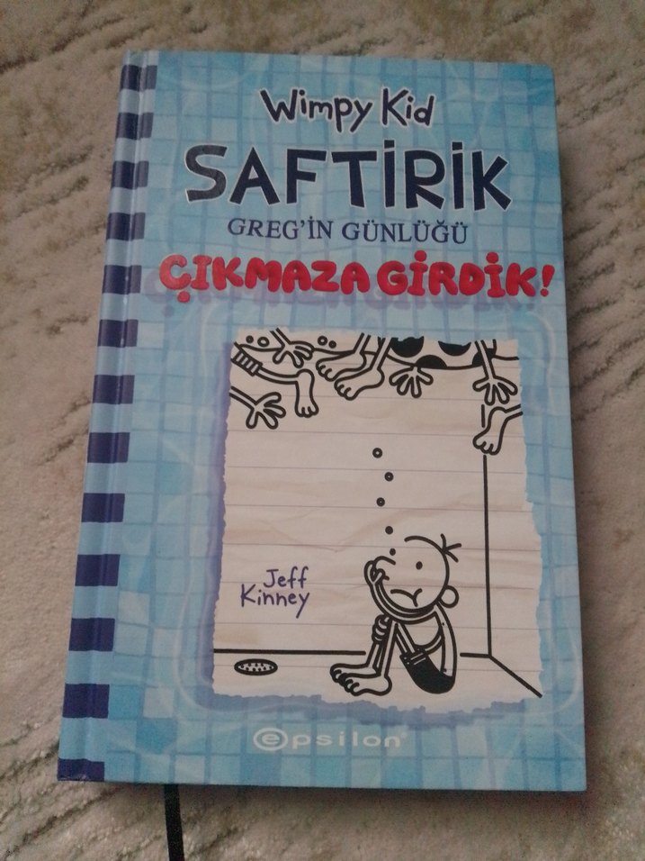 Jeff Kinney'nin Saftirik Greg'in Günlüğü - Çıkmaza Girdik! adlı mizah kitabı, köşeye sıkışmış karakterin çizgi tarzı kapağıyla Wimpy Kid serisinin bir parçası.
