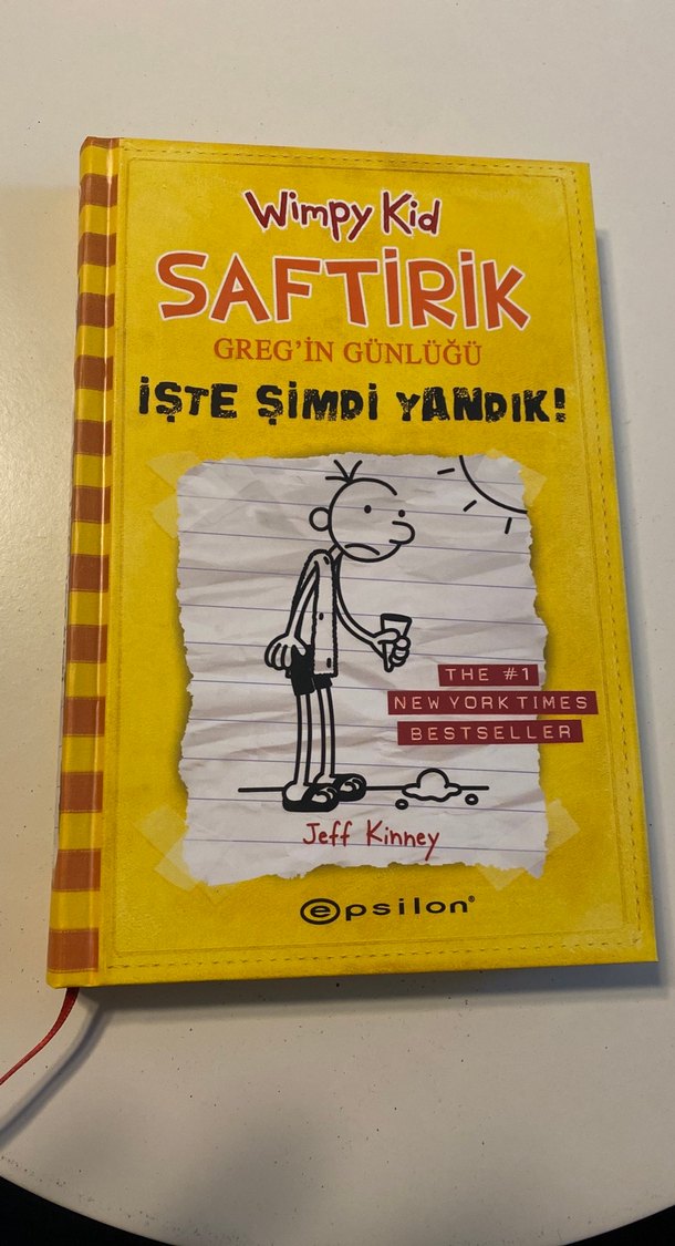 Jeff Kinney'nin yazdığı sarı kapaklı "Saftirik Greg'in Günlüğü: İşte Şimdi Yandık!" mizah kitabı, günlük tarzında eğlenceli bir hikaye sunuyor. Epsilon yayınevinden, New York Times bestseller'ı.