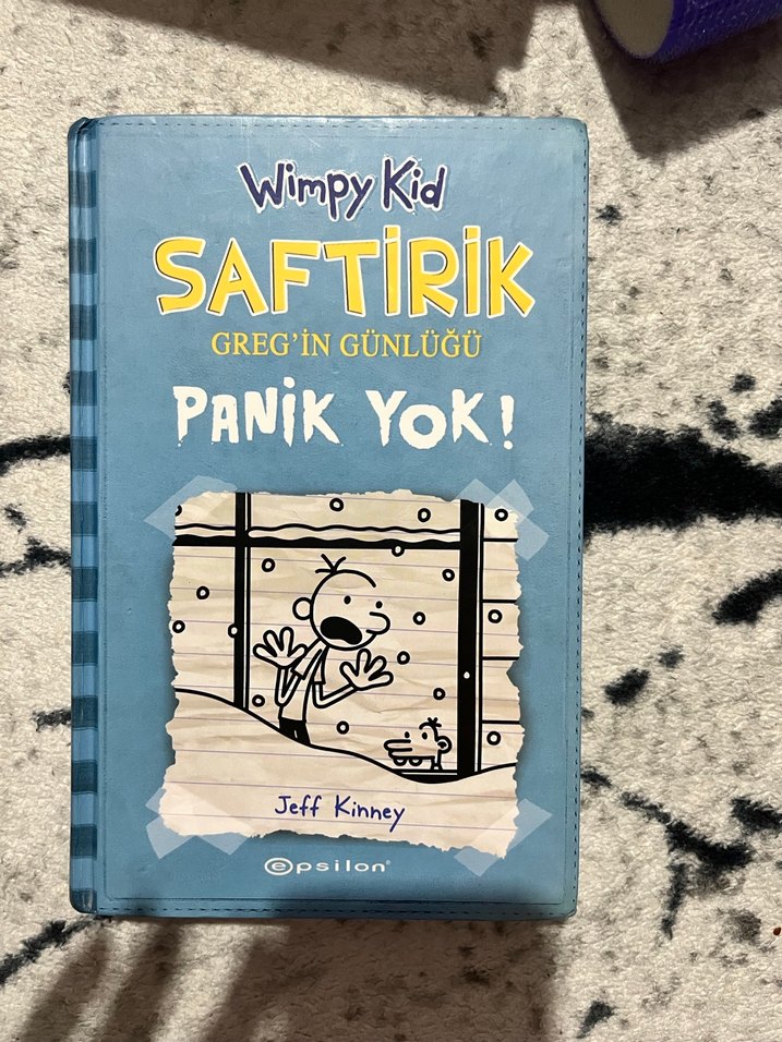 Jeff Kinney'nin yazdığı Saftirik Greg'in Günlüğü 'Panik Yok!' adlı mizah kitabı, eğlenceli ve hafif hikayeler sunar. Opsilon yayınevi.