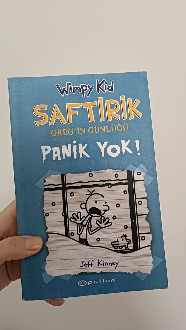 Jeff Kinney'nin yazdığı Saftirik Greg'in Günlüğü serisinden 'Panik Yok!' adlı mizah kitabı, eğlenceli maceralar içerir. Epsilon yayınevi.
