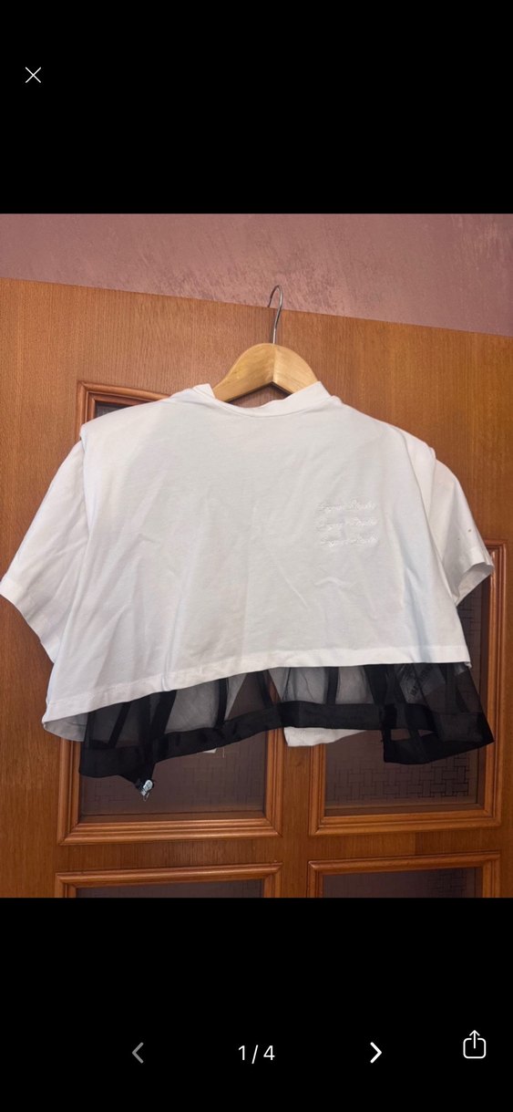 SAGAZA Beyaz Crop Top Siyah Tül Detaylı